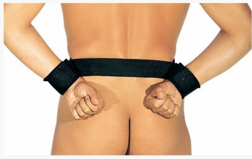 Оригинальный и крайне практичный ремень для фиксации рук в позиции сзади на талии. Аксессуар состоит из пояса с пряжкой, регулируемого по размеру, а также специальных манжет на запястья. Руки надежно закрепляются за спиной, при этом партнер оказывается в полной Вашей власти! Теперь даже самые смелые инициативы не встретят сопротивления, Вашему возлюбленному останется лишь покориться силе и умолять о пощаде. Браслеты имеют удобную застежку на липучке, что делает их крайне универсальными по размеру. Гаджет отлично сочетается с другой атрибутикой бондажа. Все аксессуары изготовлены из качественной ткани с прочными, нервущимися волокнами. Материал – полиамид.
