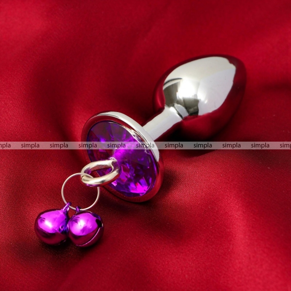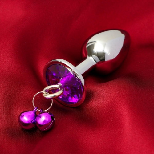 Анальная втулка с фиолетовым кристаллом и колокольчиками