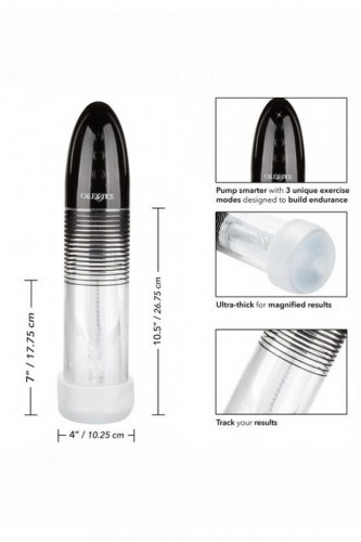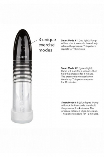 Optimum Series Automatic Smart Pump – инновационное специализированное устройство с увеличенным цилиндром и автоматическим сенсорным управлением для не инвазивного метода профилактики эректильной дисфункции. Помпа снабжена 3 уникальными режимами упражнений. Прибор разработан с учетом анатомического строения полового члена мужчины. Специализированная вставка, выполненная из премиального безопасного для тела термопластичного эластомера, без запаха и без фталатов, имеет эффект лупы позволяет наблюдать за эффектом тренировки полового органа. Применение Совершенный инструмент для профилактики половых расстройств, комплексной терапии хронического простатита и уретрита, улучшения кровообращения в области малого таза, устранения венозного застоя крови, профилактики воспаления, уменьшения отека тканей и симптомов затруднения мочеиспускания, снижения болезненности и раздражения уретры. Суть метода использования вакуумной помпы заключается в создании отрицательного давления вокруг полового члена для стимуляции искусственной эрекции. Отрицательное давление вызывает приток крови в кавернозные тела пениса, вызывая эрекцию. Сенсорное управление позволяет выбрать необходимый режим давления. Помпа оснащена кнопкой быстрого выпуска воздуха. Вставка может быть использована как часть помпы, так и самостоятельно в качестве маструбатора. Для получения максимального эффекта использование помпы должно быть регулярным. Будьте аккуратны и внимательны при работе с вакуумом. Цилиндрический насос и мягкая прочная втулка предназначены для создания идеального уплотнения и мощного всасывания. Для комфортности введения и получения максимально приятных ощущений нужно использовать смазку на водной основе. Помпа заряжается через специальный аккумуляторный USB кабель и может быть подключена практически в любом месте. Просто подсоедините идущий в комплекте шнур к изделию и совместимому порту компьютера или USB-адаптера (приобретается отдельно). Полная зарядка занимает 90 минут, ее достаточно для беспрерывной работы в течение 12 часов. Хранение Очищать игрушку желательно до и после использования. Можно помыть в теплой воде с мылом или воспользоваться специализированным чистящим средством. Перед хранением помпу и вставку необходимо хорошо просушить.