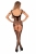 Боди-комбинезон в мелкую сеточку с элегантно приспущенными бретелями. Модель украшена плетением, напоминающим шнуровку. На груди украшение из сверкающих страз.