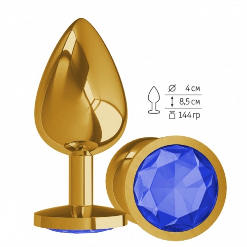 Большая золотая пробочка с синим круглым кристаллом