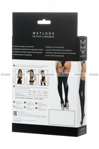 Встречайте новую, долгожданную и блестящую коллекцию белья из популярного материала Wetlook – Glossy.WETLOOK:- Отлично садится по фигуре. Глянцевая поверхность визуально удлиняет силуэт. Плотный материал скроет мелкие недостатки фигуры.- Модная вещь в сексуальном и базовом гардеробе. Чулки с имитацией под кожу. Приятный, мягкий материал Wetlook плотно облегает ножку и хорошо тянется. Притягательный блеск чулок создает сексуальные блики на гладкой поверхности ног. Wetlook чулки скроют мелкие недостатки и визуально сделают ваши ноги длиннее.
