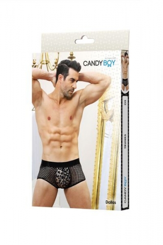 Боксеры из сетки Candy Boy Dallas с леопардовой черно-золотистой вставкой разожгут в спальне настоящий первобытный огонь страсти!