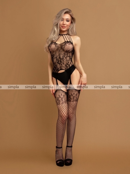 Закрытая открытость, сокрытые ключицы, обрамленная кружевом грудь. Динамика узоров сетки черного цвета ведет взор вниз, к бедрам, окаймленными цветочным узором, имитирующим чулки. Пояс выполнен из однородного плетения, которое делает талию более изящной. Если вы не хотите сразу приступать к близости, то можете для начала обыграть образ классическим черным пиджаком и туфлями лодочками. Особый состав и плетение не сковывает движения и не перетягивает тело, а значит вам будет комфортно! Подходит для размеров от S до XXL.