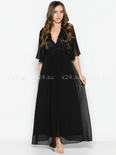 Чёрный прозрачный пеньюар с ажурным верхом "Миледи" SM