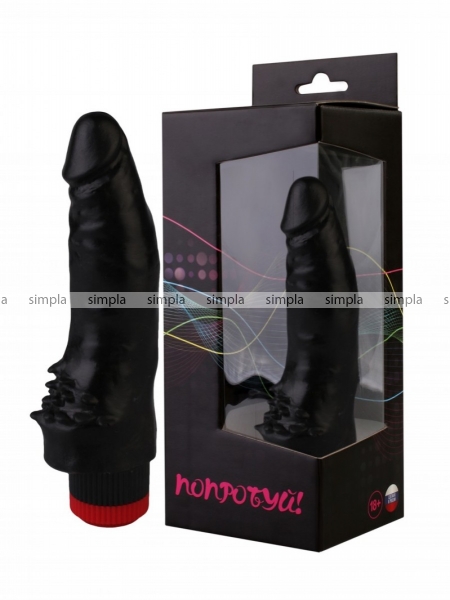 Черный вибратор со стимулирующими пупырышками Джага (16,5 см)