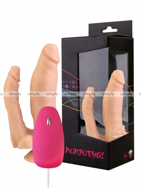 Двойное наслаждение! Реалистичный вибромассажер с выносным пультом управления телесного цвета с гордостью исполнит самые сокровенные желания влюбленной пары. Разгоряченная от страстного угара плоть будет приятно успокоена проникновением в нее яростного фаллоимитатора. За основным не будет отставать и дополнительный фалоимитатор, который настроен на анальную стимуляцию. Не стоит сдерживать свои порывы в вашей спальне - позвольте им вырваться на свободу и подарить вам чувственное наслаждение.