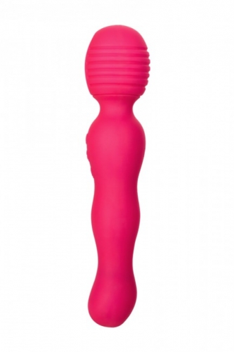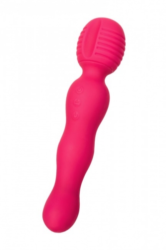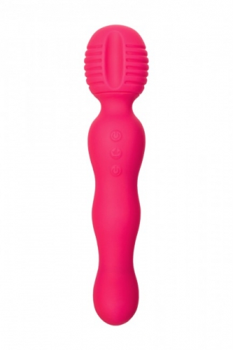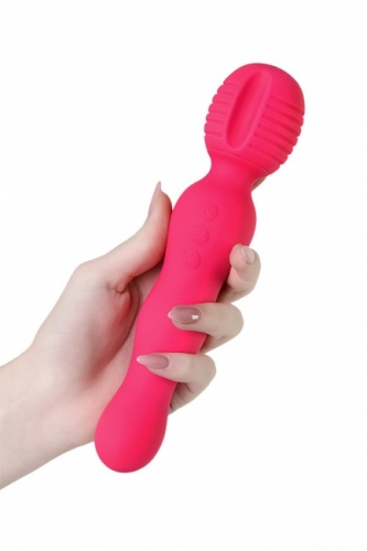 Двусторонний вибратор позволяет одинаково эффективно стимулировать клитор и глубоко проникать внутрь влагалища, осуществляя классические фрикции. Вверху находится крупная ребристая головка, как у широко известных вибраторов Wand. Она очень удобна для ласк клитора, половых губок, промежности, груди и любых других внешних эрогенных зон. Если игрушку перевернуть, волнистая рукоятка выступает в роли классического фаллоимитатора. Два моторчика работают совершенно независимо друг от друга. Гаджет поддерживает функцию нагрева, а также целых 10 режимов вибрации, пульсации и эскалации.