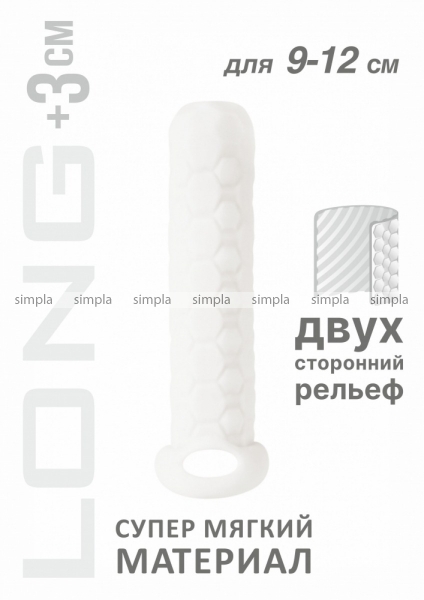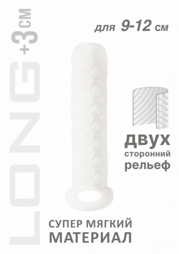 Насадка Long коллекции Homme обеспечивает увеличение размера пениса в длину. Материал насадки - гипоаллергенный, создающий имитацию мягкой и шелковистой «кожи» ТПЕ. Фиксирующее кольцо на мошонке удерживает насадку на члене, предотвращая ее смещение. Насадка подходит для фаллоса длиной 9-12 см. Двухсторонний нереалистичный рельеф насадки позволит одновременно стимулировать сразу обоих партнеров во время полового акта и дополнительно подарит приятные ощущения. Насадка оснащена встроенным удлинителем, удлиняет пенис на 3,5 см, а, благодаря толстым стенкам увеличивает диаметр пениса до 1,5 см. Насадка отлично тянется и компенсирует анатомическое несоответствие между партнерами.