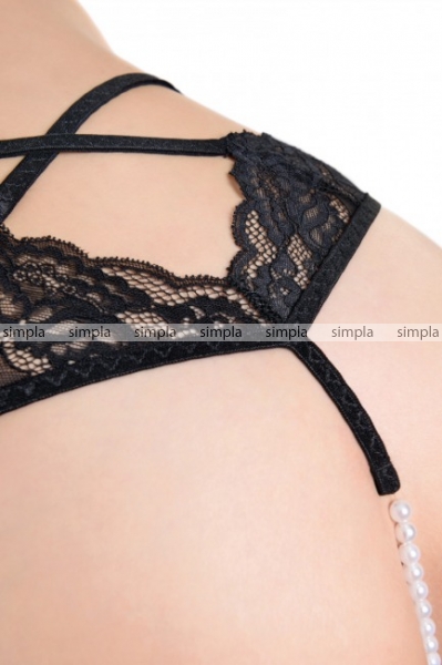 Эротические черные трусики-пояс с жемчужной нитью Erolanta Wendy SM