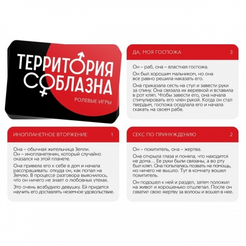 Этот небольшой набор позволит вам разнообразить сексуальную жизнь и добавить в неё немного перчинки. Вас ждут 20 карт с ролевыми играми из серии «Территория соблазна», анальная втулка и вибропуля для получения новых ощущений. Выбирайте ролевую игру, которую хотите попробовать сегодня, и воплощайте её в жизнь! Прелесть этого набора заключается в анонимной упаковке. Ни один человек не догадается, сколько удовольствия прячется в маленьком пакете. Это будет только ваш секрет! Благодаря специальным отсечкам на пакете и механизму ziplock вы можете быть уверены в целостности упаковки и её содержимого.