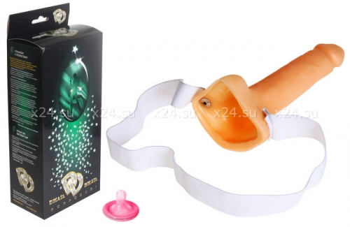 Страпон с полостью для полового члена в спокойном состоянии. Имеет удобное эластичное крепление к телу, шириной 2 см. Мягкий и приятный на ощупь. Рекомендуется использовать со смазками на водной основе. Может использоваться как мужчинами со слабой эрекцией, так и женщинами для доминирования.