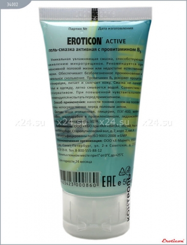 EROTICON Active гель-смазка с провитамином В5 на водной основе. Уникальная увлажняющая смазка, способствующая заживлению микротрещинок. Рекомендуется при интенсивной половой жизни или недостатке естественной смазки. Обеспечивает безболезненное проникновение и длительное скольжение. Хорошо способствует устранению сухости при профилактичеком уходе за слизистой, для этого смазку наносят на половые органы после гигиенических процедур. Провитамин В5 ускоряет процессы регенерации, питает и смягчает кожу. Обладает увлажняющим, заживляющим, разглаживающим и успокаивающим кожу действием.