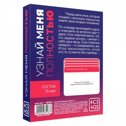 Игра для двоих УЗНАЙ МЕНЯ ПОЛНОСТЬЮ (25 карт)