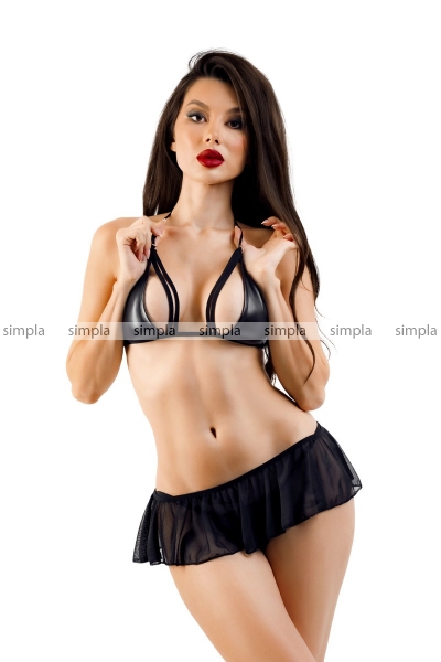 Хотите почувствовать себя неотразимой и привлекательной? Тогда комплект Behati из материала wetlook – это то, что вам нужно! Комплект состоит из лифа в стиле бикини, трусиков и юбочки из сетки, которые великолепно дополняют друг друга. Игривый и сексуальный образ подходит для любого случая – страстное свидание с любимым или жаркая ночная вечеринка. Эффект “мокрой ткани”, создаваемый материалом Wetlook передает дерзкое и раскованное настроение. Невесомая мини-юбочка приковывает внимание к открытым ягодицам и женственным изгибам бедер. Под юбкой скрываются провокационные трусики-стринги. Лиф с оригинальным дизайном идеально садится на любую грудь, а завязки на шее и спине обеспечивают выгодную посадку. Не упустите возможность создать незабываемый образ с помощью комплекта Glossy Behati из материала Wetlook. Почувствуйте себя настоящей звездой и завоюйте все внимание вокруг себя. Чулки не входят в комплект. Встречайте новую, долгожданную и блестящую коллекцию белья из популярного материала Wetlook – Glossy. Материал WETLOOK: Отлично садится по фигуре; Глянцевая поверхность визуально удлиняет силуэт; Плотный материал скроет мелкие недостатки фигуры; Модная вещь в сексуальном и базовом гардеробе.