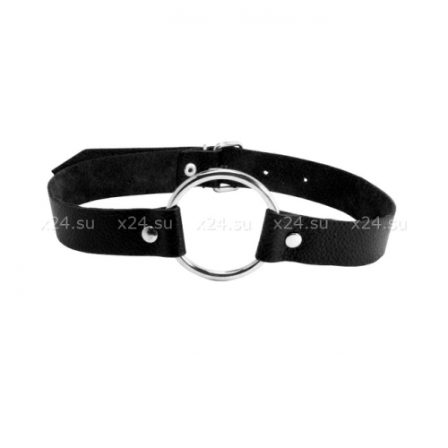 Кляп-кольцо на ремешке из черной натуральной кожи