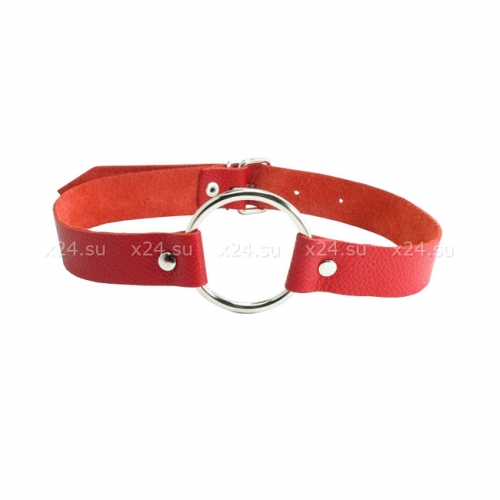 Кляп-кольцо на ремешке из красной натуральной кожи
