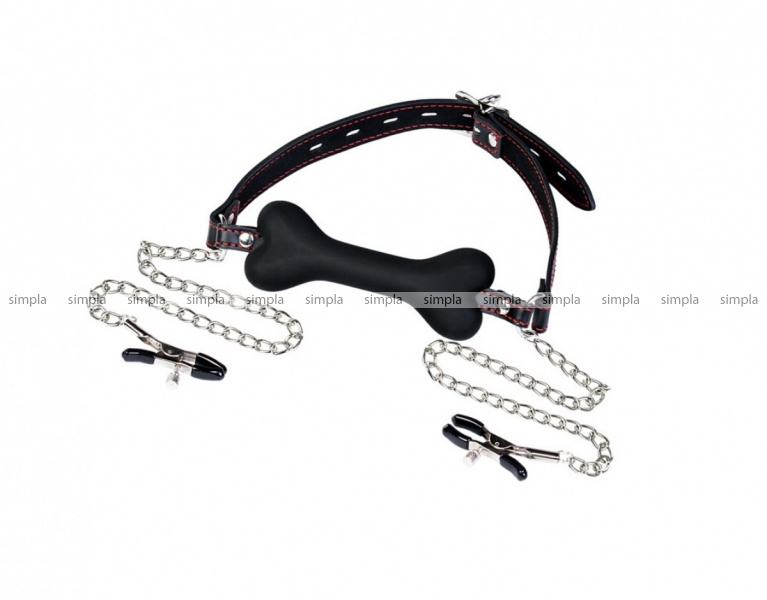 Кляп-трензель в виде косточки с зажимами для сосков TOYFA Theatre