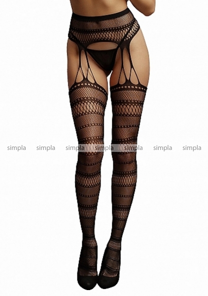 Suspender Striped Pantyhose - колготки из мягкой эластичной сетчатой ткани с имитацией чулок. Их декоративный рисунок привлекает внимание к ногам, а мягкое тканое полотно вызывает божественные ощущения на коже. Стринги в комплект не входят.