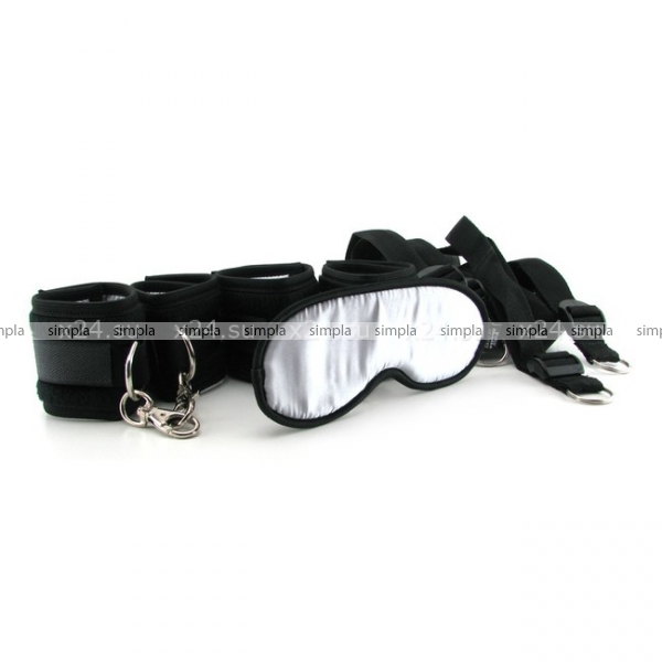 фиксаторы на руки, фиксаторы на ноги, маска на глаза, универсальное крепление для кровати, атласный мешочек для хранения