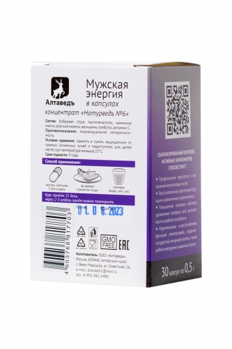 Концентрат пищевой мужской для восстановления эректильной дисфункции и профилактики простатита «Натурведъ № 6» «МУЖСКАЯ ЭНЕРГИЯ», 30 капс.