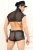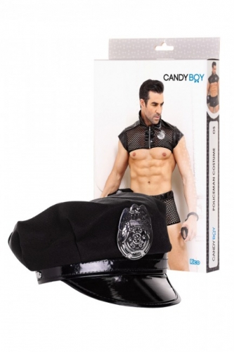 Мужской игровой костюм для ролевых игр в полицейского Rico от бренда Candy Boy. Стильный укороченный топ с отложным воротником легко расстегивается одним движением руки. Боксеры на широком эластичном поясе также дополнены провоцирующей молнией. Сочетание крупной сетки и материала wetlook выгодно подчеркивают достоинства фигуры. Пластиковые молнии без острых краев. Кепка с лаковым козырьком регулируется в обхвате. 2 значка с надписью City Police и пластиковые наручники входят в комплект.