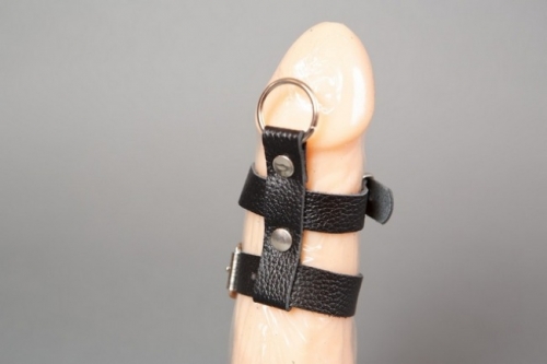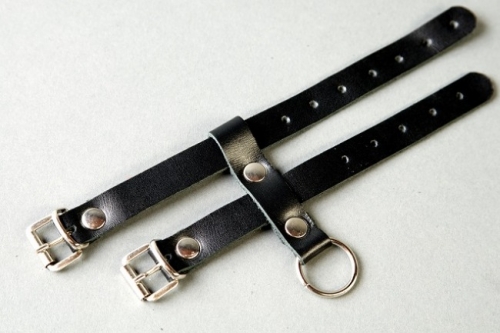 Сбруя из натуральной кожи универсального размера. Застегивается с помощью ремешков с пряжками. Имеет кольцо для пристегивания поводка или других карабинов.