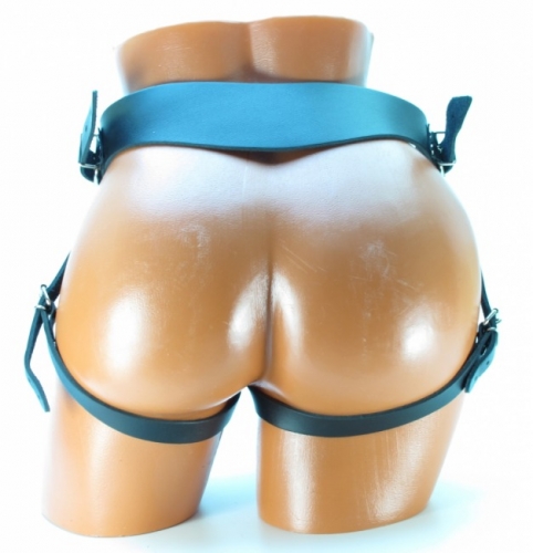 Чёрные трусики из натуральной кожи с креплением для огромного фаллоса. Размер трусиков регулируется и уверенно зафиксируется на большинстве женских фигур. Устройство для крепления фаллоса имеет ремни для регулировки обхвата большого страпона.