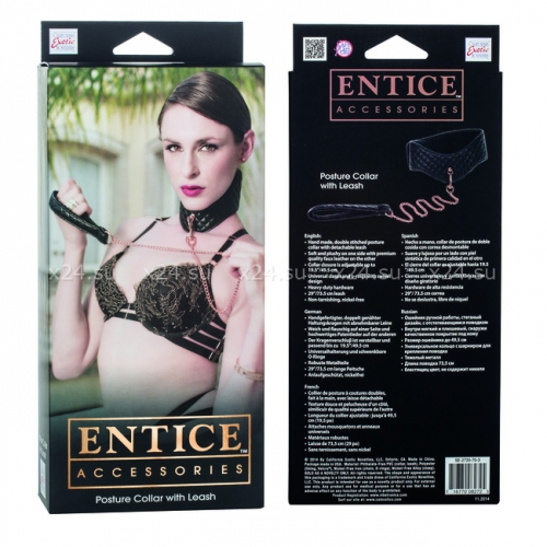 California Exotic Entice Posture Collar with Leash – ошейник с поводком, с присущим коллекции аксессуаров Entice строгим дизайном. Аксессуар декорирован красивым узором из декоративных строчек. Ошейник регулируется по размеру и имеет мягкую плюшевую подкладку, которая обеспечивает максимально комфортное использование. Застежка Velcro.