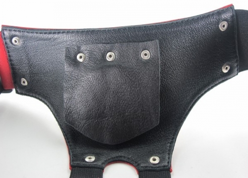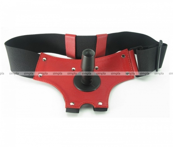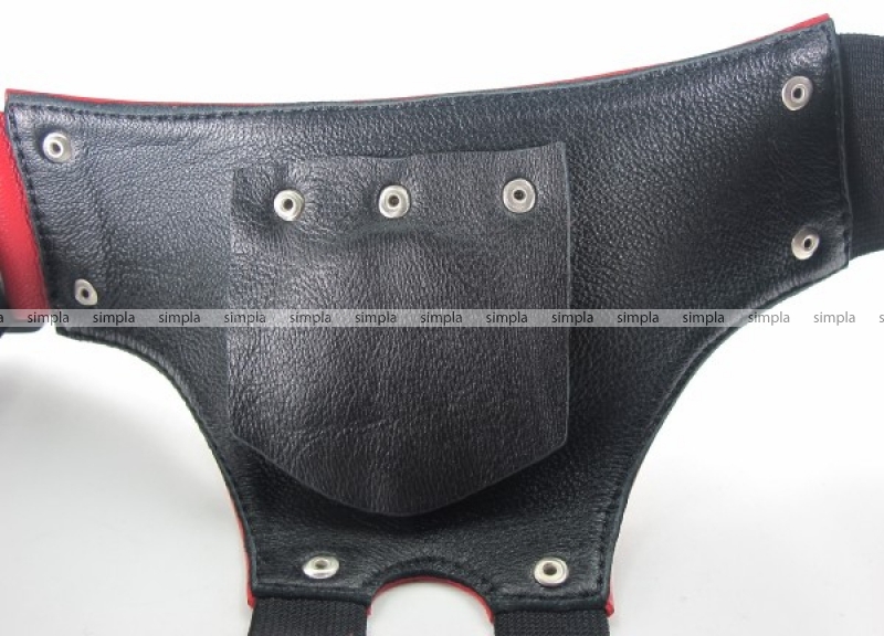Трусики для страпона, в комплект входит штырек для насадок. Размер регулируется ремешками (ширина 5 см), которые крепятся на бёдрах. Основная часть трусиков (передняя) изготовлена из кожи, ремешки изготовлены из плотных корсажных лент.