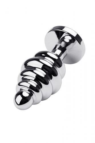 Крупная металлическая рельефная анальная втулка с красным кристаллом Toyfa