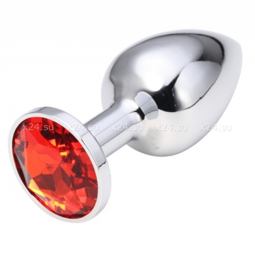 Малая металлическая серебряная пробка с красным кристаллом Jewelry Plugs Anal