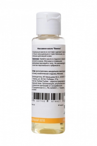 Натуральные масла в составе сделают массаж не только насыщенным и чувственным, но и полезным для вашей кожи. Отлично скользит и смывается водой. Приятный аромат ванили с лёгкостью расслабит и подготовит вас к чувственному массажу. Подготовьтесь к свиданию: После приёма расслабляющей ванны побалуйте себя ароматным массажем. Налейте масло в ладони и лёгкими массажными движениями массируйте своё тело. Спокойный аромат и натуральные масла в составе сделают вашу кожу приятной и мягкой.