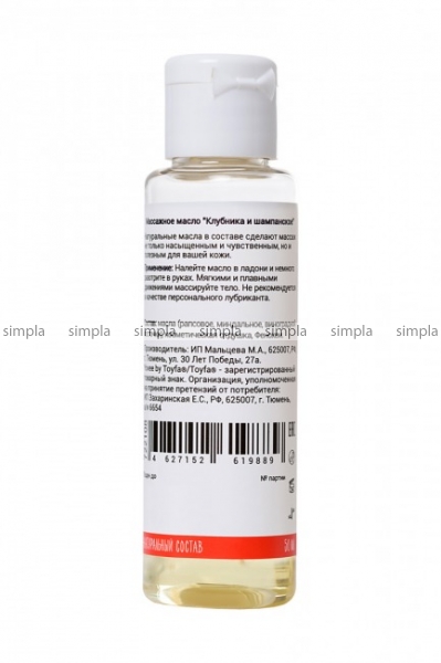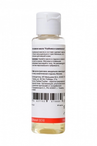 Натуральные масла в составе сделают массаж не только насыщенным и чувственным, но и полезным для вашей кожи. Отлично скользит и смывается водой. Праздничный аромат клубнички в шампанском с лёгкостью расслабит и подготовит вас к чувственному массажу. Подготовьтесь к свиданию: После приёма расслабляющей ванны побалуйте себя ароматным массажем. Налейте масло в ладони и лёгкими массажными движениями массируйте своё тело. Освежающий аромат и натуральные масла в составе сделают вашу кожу приятной и мягкой.