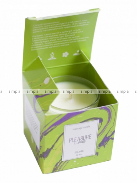 Массажная свеча Pleasure Lab - прекрасный проводник от легких заигрываний до страстного секса. За счет приятного аромата свеча дарит ароматерапевтический эффект, позволяет расслабиться и создать интимную атмосферу. Свеча Eclipse обладаем ярким ароматом с хвойно-дымными нотами сосны. В состав свечей входят органические компоненты: натуральный соевый воск, натуральные масла: ши, миндальное, кунжутное, виноградных косточек, ароматическая композиция и хлопковый фитиль. Способ применения: зажгите свечу и подождите 5-10 минут, пока расплавятся массажные масла. В это время вы можете наслаждаться её чудесным ароматом. Погасите пламя свечи и дайте ей остыть в течение нескольких секунд. Соевый воск плавится при температуре, близкой к температуре кожи, поэтому им нельзя обжечься. Теперь свеча готова к использованию. Нанесите немного растаявшего масла на руки, тело и можете начинать массаж.