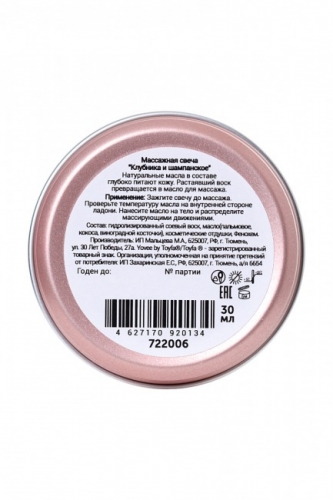 Массажная свеча «Романтический массаж» с ароматом клубники и шампанского (30 мл)
