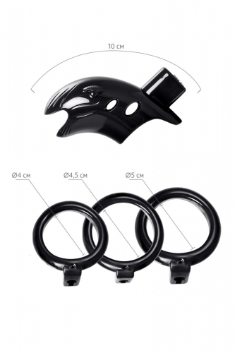 Идеальный инструмент для контроля и доминирования — пояс верности для него. Жесткая изоляция пениса гарантирована в этом устройстве. Никакой несанкционированной эрекции, пока половой член заперт на замок в этой пластиковой клетке, а ключ спрятан в потайном месте. Отверстие на конце делает возможным мочеиспускание, поэтому пояс подходит для длительного ношения. В комплекте три пластиковых кольца разного диаметра (4 см, 4,5 см, 5 см), подходящих для разных размеров пенисов и вариантов ношения. С этим девайсом вы всегда будете уверены, что сексуальная жизнь партнера подчиняется только вашим капризам и желаниям.