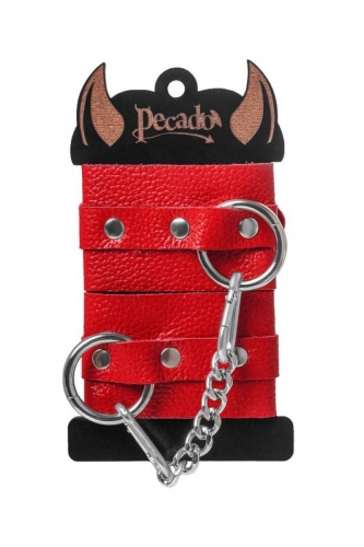 Самый мягкие наручники из всего ассортимента Pecado. Лаконичный дизайн, насыщенно красный цвет и терпкий аромат материала - повышают градус возбуждения в процессе ролевых игр. Наручники выполнены из экологичной и натуральной кожи. Полностью ручная выделка материала обеспечивает хорошую износостойкость. Каждый миллиметр аксессуара очень тактильно приятный. Манжеты и ремешки не мнутся. При правильном использовании не оставляют следов на запястьях. Благодаря стальной застежке и отверстиям с люверсами можно подобрать нужный обхват. Между собой наручники соединены с помощью карабинов и короткой цепочки. При необходимости ее можно снять и заменить на более длинный вариант. Используется для того, чтобы обездвижить партнера и зафиксировать руки в необходимом положении. Подходит как маститым знатокам БДСМ-культуры, так и начинающим парам. ? 100% натуральная кожа. ? Ручная работа. ? Износостойкий, тактильно приятный материал. ? Надежная высококачественная фурнитура. ? Универсальный размер. ? Длина манжет – 18 см, ширина манжет - 5,5 см, длина сцепки – 20 см.