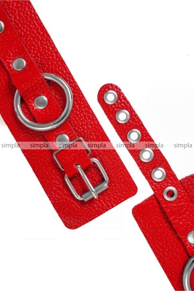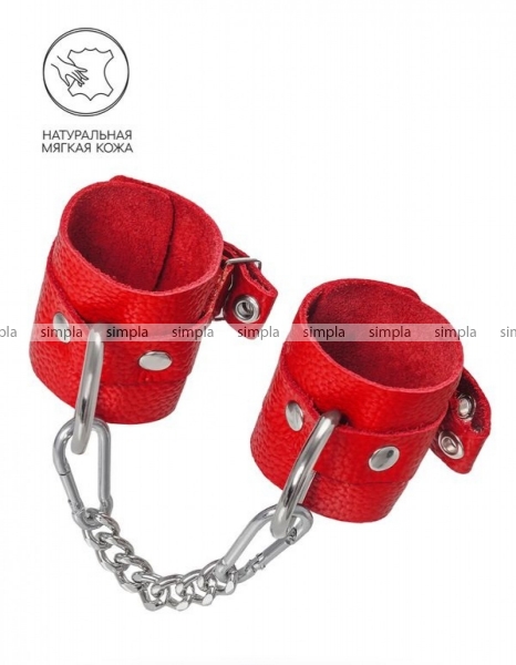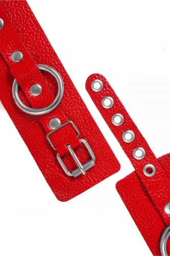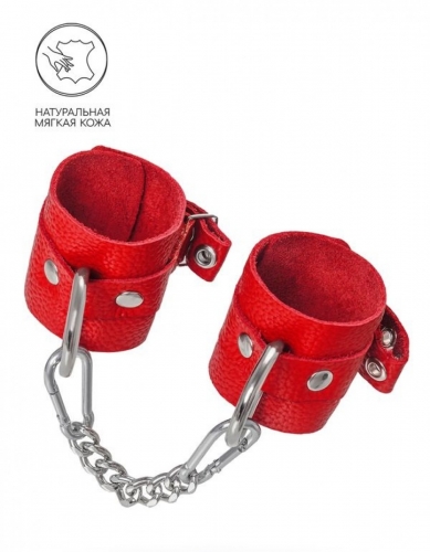 Мягкие красные наручники из натуральной кожи Pecado BDSM