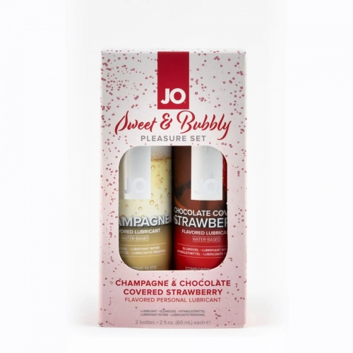 Набор из лубрикантов "JO": Шампанское/Champagne и Клубника в шоколаде/Chocolate Covered Strawberry станет прекрасным дополнением к романтическому вечеру. Благодаря вкусовым лубрикантам оральные ласки становятся более приятными и страсными. Вкусовые лубриканты обеспечивают длительное гладкое скольжение без липкости и скатывания. Благодаря только натуральным ароматизаторам они имеют естественный вкус шампанского и клубники в шоколаде. Не содержат сахара и подсластителей. Не нарушают микрофлору и кислотно-щелочной баланс. Лубриканты имеют водную основу, но она такая же нежная как силикон, обеспечивает долгое скольжение, никакой липкости, легко смывается водой. Лубриканты совместимы с материалами большинства игрушек. Обладают всеми преимуществами фаворита JO H2O, плюс приятный аромат и нежная сладость. Применение: Идеальны для оральных игр. Совместимы с алкоголем. Можно добавлять в напитки, использовать как топинг, смешивать коктейли из разных вкусов. Небольшое количество персонального лубриканта нанесите на интимные участки. Для использования с презервативом нанесите на наружную сторону презерватива. Безопасен для латексных изделий.