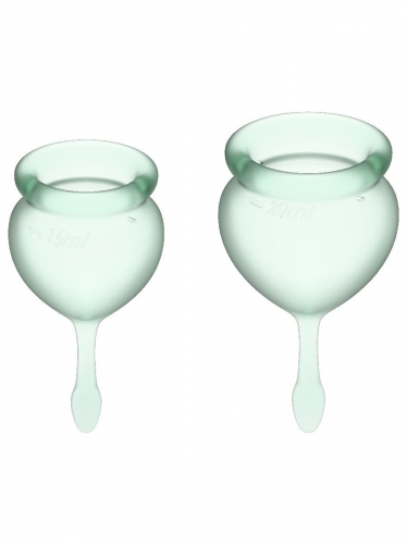 Satisfyer Feel good Menstrual Cup - набор, состоящий из двух менструальных чаш, вместимостью 15 и 20 мл. Изготовлены они из медицинского, приятного на ощупь силикона. Благодаря бесшовной обработке и элегантно расположенной мини-ручке в виде капельки чашка очень проста и приятна в использовании. Применение Менструальная чаша является экологически чистой альтернативой тампонам. Гибкий материал идеально адаптируется к вашим контурам и обеспечивает безопасную гигиеническую защиту на срок до 12 часов. Для более комфортного введения в первые разы можно использовать лубрикант на водной основе. Хранение Очищать чашу желательно перед первым использованием и между двумя циклами. Можно просто прокипятить в течение нескольких минут. В течение менструального цикла, ее достаточно промывать чистой водой.