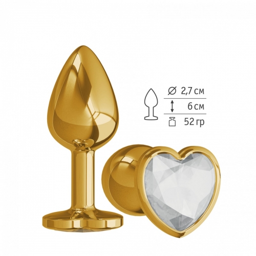 Небольшая золотая анальная втулка с прозрачным кристаллом в виде сердца Джага