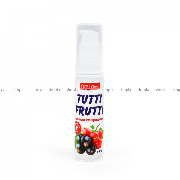 TUTTI-FRUTTI свежая смородина со сладким вкусом и головокружительным ароматом раскрепостит, закружит в водовороте любви и удовольствия, внесёт в сексуальную жизнь новизну и разнообразие. Гель-лубрикант на водной основе обладает увлажняющим и ароматизирующим действием, придаёт половым органам вкус сладости. Лубрикант имеет нежную лёгкую консистенцию, не нарушает микрофлору интимных зон, подходит для обоих партнёров. TUTTI-FRUTTI свежая смородина совместим с секс-игрушками и презервативами, может использоваться в качестве старт-смазки, Не липнет после нанесения. Легко смывается водой. БЕЗВРЕДЕН ПРИ ПРОГЛАТЫВАНИИ!