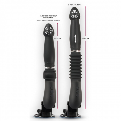 Этот автоматический вибратор Fucking Machine выделяется своими глубокими толчками на 3 регулируемых скоростях. Это не только скорость и глубина толчков, а так же 7 режимов вибрации, которые можно контролировать отдельно. Гладкая поверхность и форма стимулятора помогают этой машине скользить достаточно глубоко и массировать все зоны внутри. Регулируемая и съемная присоска вместе с пультом дистанционного управления делает возможным использование без рук. Дистанционное управление также означает, что партнер может взять управление на себя. Прилагаемый USB-кабель можно использовать для зарядки пульта дистанционного управления и вибратора. Шаг поступательных движений - 6 см. Рабочая длина - 15 см.
