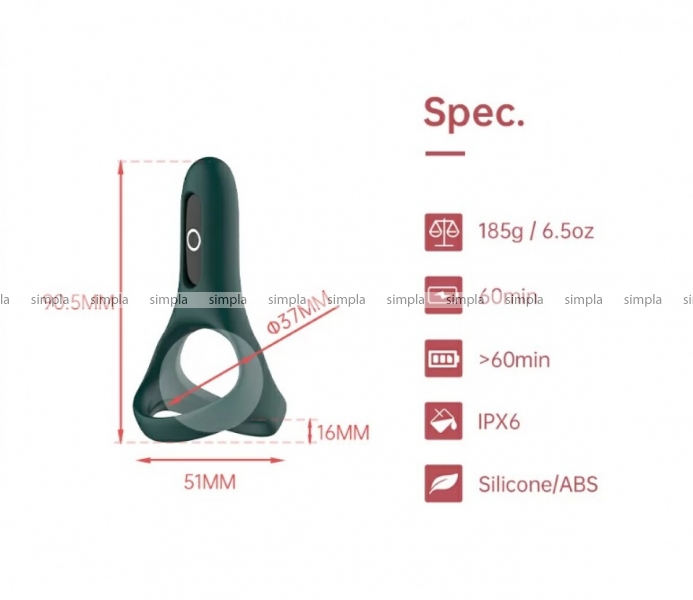 параметры: общая длина 9 см, диаметр кольца 3,7 см, длина вибропули 4 см