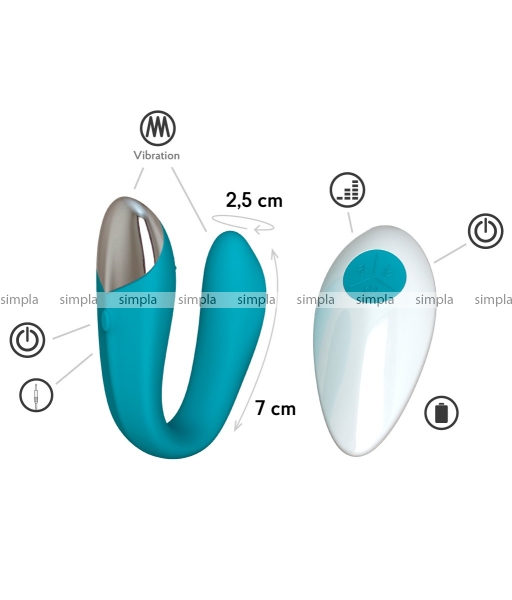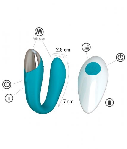 Эта нежная и бархатистая игрушка с двумя мощными вибро-элементами сделана из безопасного силикона цвета морской волны позволит усилить общее удовольствие во время секса за счёт одновременной стимуляции фаллоса партнёра, вагинальных стенок и клитора партнёрши. Регулируйте уровень вибрации пультом ДУ с 8-ю уникальными режимами и глубокое чувственное наслаждение на заставит себя ждать! Ты можешь использовать его в одиночку, а можешь взять с собой и поиграть в скрытую публичность! Работает 1,5 часа без подзарядки и легко моется под водой.