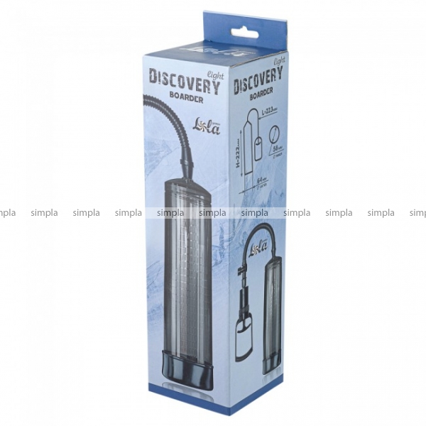 Высокоэффективная вакуумная помпа Discovery Light Boarder в темной цветовой гамме. Емкость выполнена из ABS-пластика черного дымчатого оттенка и выглядит весьма изящно. Девайсимеет все необходимое, чтобы обеспечить правильную и безопасную стимуляцию полового члена. Ее можно использовать в процессе мастурбации, для подготовки к сношению с целью стабилизации эрекции, а также для увеличения члена с помощью специальных косметических средств. Колба с уплотнителем в нижней части укомплектована удобным пальчиковым насосом на гибком силиконовом шланге. Насос снабжен системой экстренного сброса давления. Поверхность колбы снабжена линейкой для отслеживания эрекции.