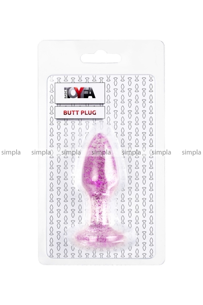 Прозрачная анальная втулка с фиолетовыми блестками TOYFA