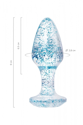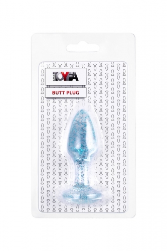 Прозрачная анальная втулка с голубыми блестками TOYFA