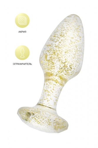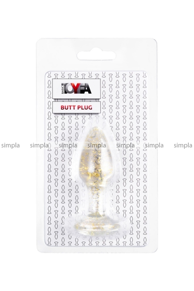 Прозрачная анальная втулка с золотыми блестками TOYFA